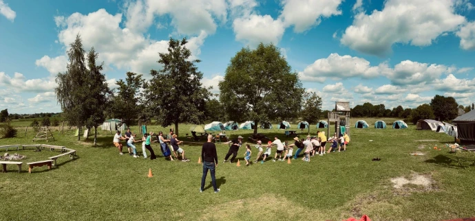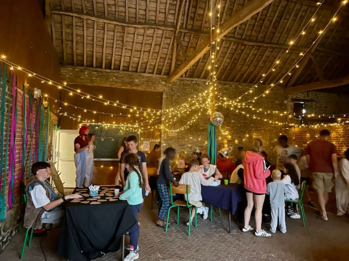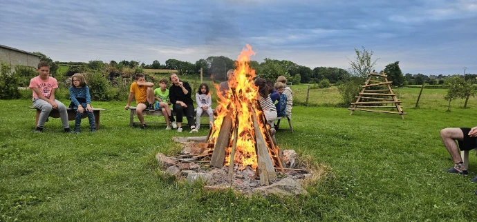 Chaque été, nous organisons cinq séjours dans une ferme de l’Avesnois que nous louons pour l’occasion. Ce lieu rustique dispose d’une cuisine, de sanitaires, d’une grange, de plusieurs salles pour les activités, et d’un grand terrain pour les jeux en plein air. Nous dormons sous tente, partageons des repas simples, et proposons des activités variées : grands jeux, veillées autour du feu, ateliers créatifs, cuisine, moments de détente…