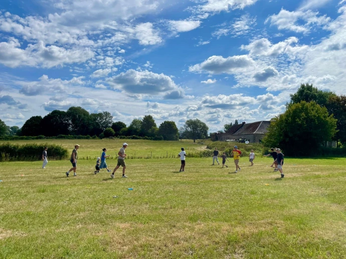 Chaque été, nous organisons cinq séjours dans une ferme de l’Avesnois que nous louons pour l’occasion. Ce lieu rustique dispose d’une cuisine, de sanitaires, d’une grange, de plusieurs salles pour les activités, et d’un grand terrain pour les jeux en plein air. Nous dormons sous tente, partageons des repas simples, et proposons des activités variées : grands jeux, veillées autour du feu, ateliers créatifs, cuisine, moments de détente…